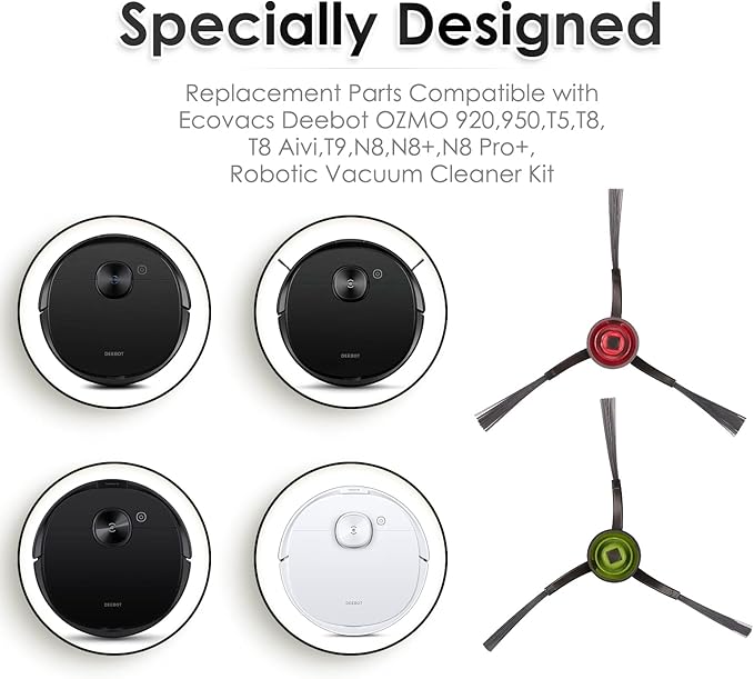 - 【Specially Designed】 The side brushes are specially developed for robot vacuum ECOVACS DEEBOT OZMO N10 N10 Plus 920 950 T8 AIVI Max T9 T5 N5 N7 N8+ N8 Pro Plus DX55 DX93 DJ65. Please make sure your model is correct before the order.