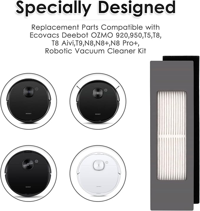 - 【Specially Designed】 The replacement robot vacuum filter parts are specially developed for Ecovacs DEEBOT OZMO N10 N10 Plus 920 950 T8 AIVI Max T9 T5 N5 N7 N8+ N8 Pro Plus DX55 DX93 DJ65. Please make sure your model is correct before order.